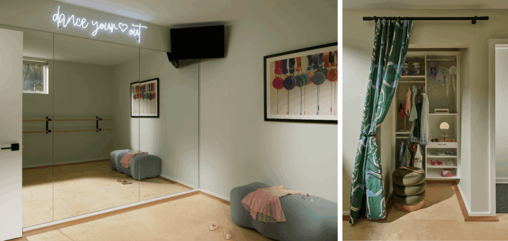Even the dance room includes a dress-up closet and a real dance studio floor. Every material was chosen with texture, durability, and feeling in mind, knowing this space was meant to be lived in, played in, and loved. If you haven’t taken the full tour yet, it’s definitely worth your while.
