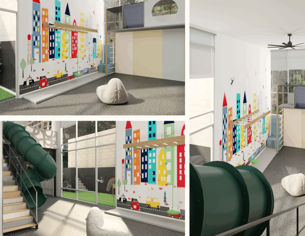 The process became incredibly collaborative. We could tweak, adjust, and explore possibilities together before anything was built. The jungle gym and slide, for example, went through several iterations to strike the right balance between fun, practicality, and safety. Seeing those changes in 3D helped everyone feel confident in the final decisions.