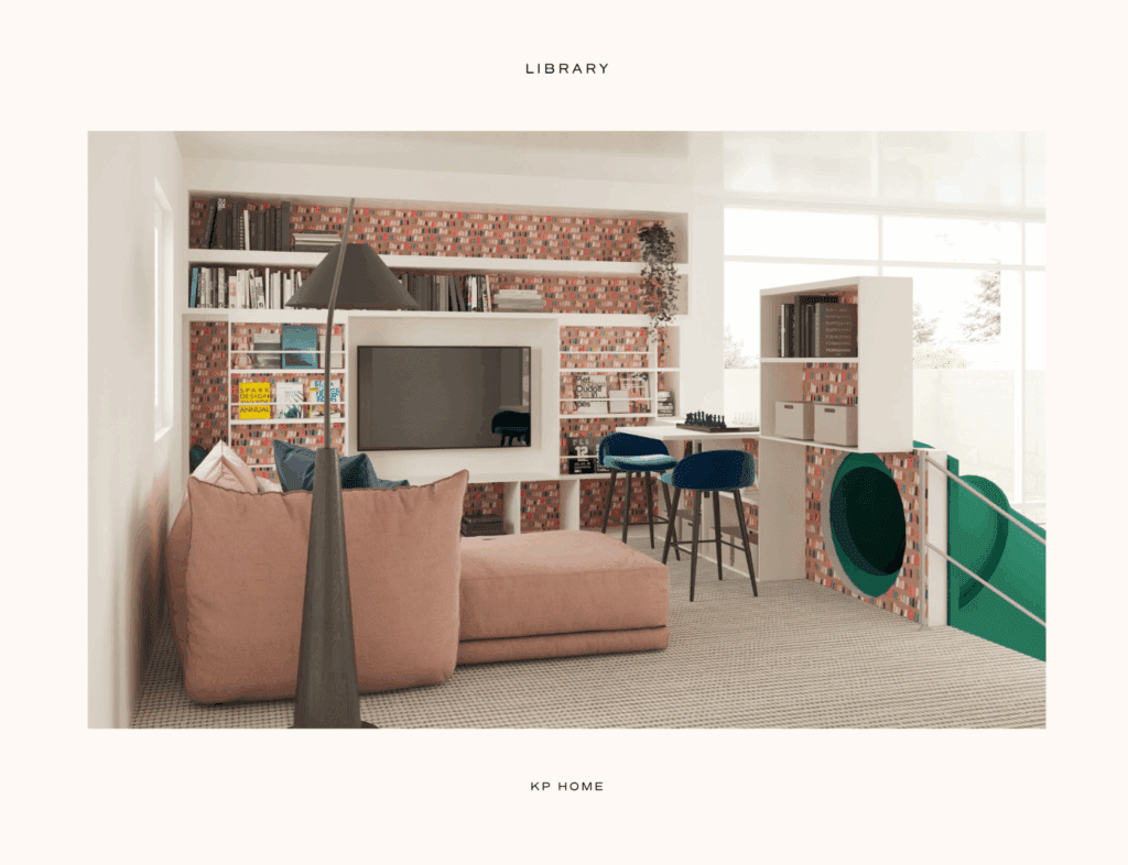 The hidden compartments tucked into the library and slide that make the space feel layered and full of discovery. A childhood dream!